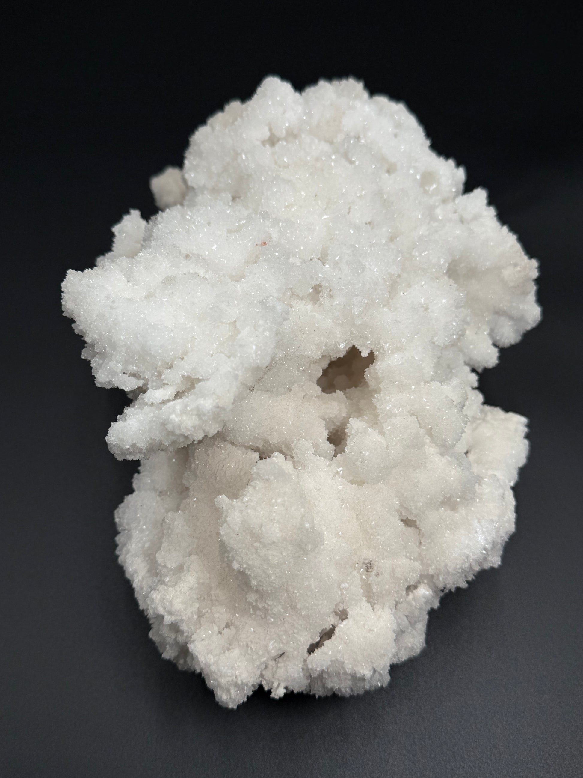 Sourced from the renowned caves of Santa Eulalia, Chihuahua, Mexico, this Cave Calcite specimen weighs 5 lbs 7.2 oz and showcases brilliant sparkle throughout. Its natural beauty intensifies dramatically under UV light, revealing captivating fluorescence that makes it a standout piece. An ideal choice for mineral collectors and those drawn to the mystical allure of crystalline formations.