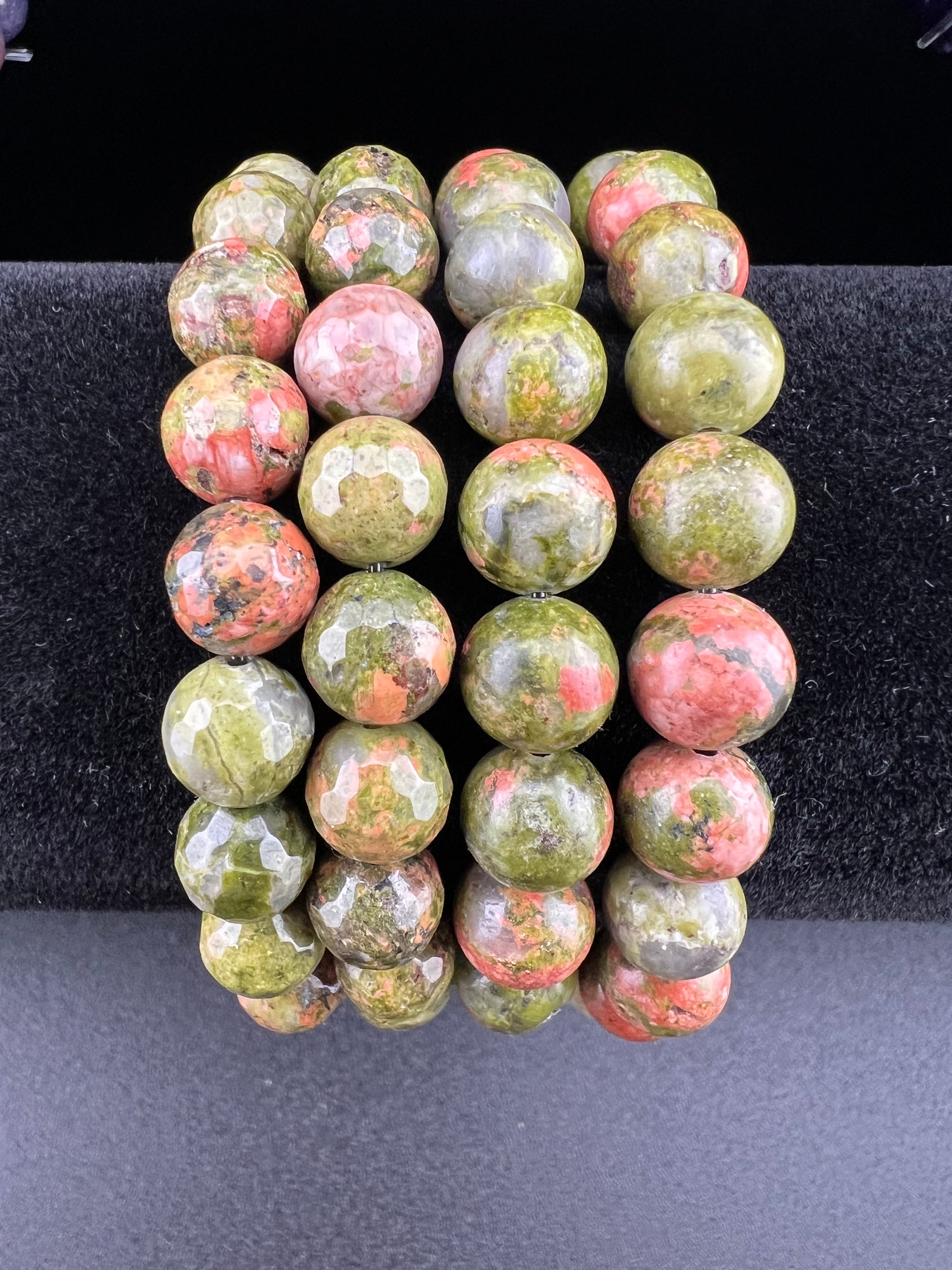 This unique Unakite 8mm Bracelet is crafted from the natural stones found in North Carolina, USA. The earthy tones and smooth texture add a touch of creativity to your style. Each bracelet is one-of-a-kind, making it a truly special accessory.